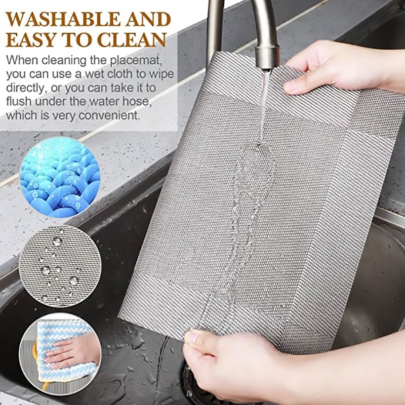 - الوظائف العملية: تأتي الحصائر والواقيات المقاومة للماء مع مواد مصممة بدقة ، مما يضمن تأثيرات مثالية غير قابلة للانزلاق ؛ يمكنها حماية طاولاتك من الماء والبقع والزيت والغبار والحرارة والخدوش والمزيد ، مما يوفر لك وقتًا ممتعًا لتناول الطعام ويوفر الكثير من الوقت والجهد في التنظيف