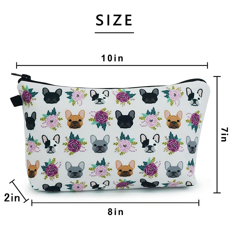 Material tejido de poliéster y forro de esponja Dimensión 8,65 x 5,30 x 7,08 pulgadas Color Como se muestra Género mujeres Uso Cosméticos, maquillaje, artículos de tocador. Rasgo cierre de cremallera, ligero Cantidad 1 PC