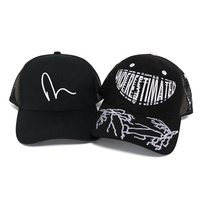 1. Nombre del productoGorras de camionero de gamuza personalizadas con MOQ pequeñas, gorras de malla negras con logotipo bordado, gorras de camionero unisex de moda para exteriores