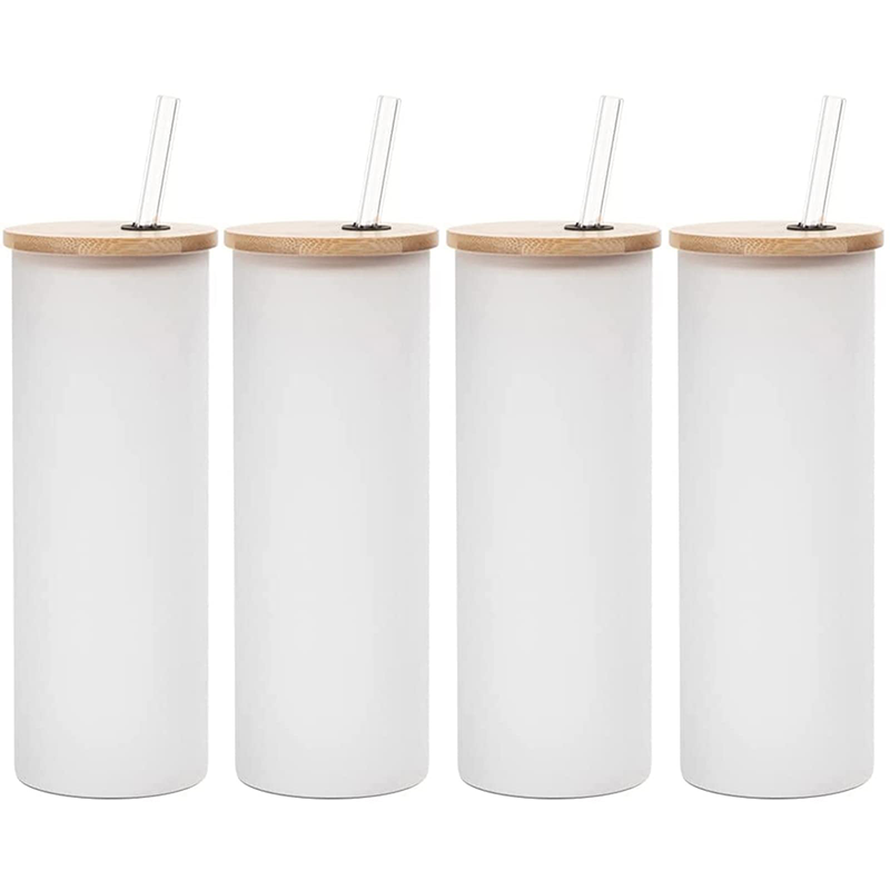 VASOS DE VIDRIO DE SUBLIMACIÓN: estos vasos esmerilados en blanco están hechos de vidrio de alta calidad y la superficie está rociada con un recubrimiento 3A de doble capa, el color de impresión es brillante y no empañado, lo cual es muy adecuado para la transferencia térmica. Con estos vasos de vidrio para sublimación, puede personalizar fácilmente sus propios vasos con sus fotos, diseños o logotipos favoritos. Estos vasos son perfectos para regalos, artículos promocionales o simplemente para uso diario. ¡Ordene su propio juego de estos vasos de vidrio de sublimación hoy!