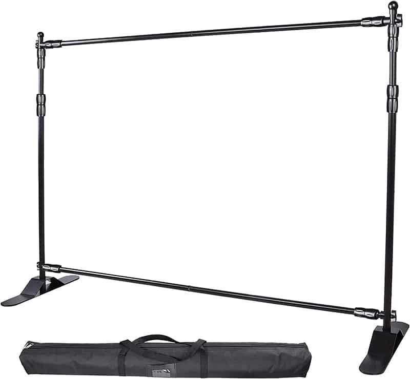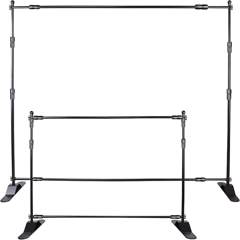 • [Dimensioni regolabili]: presenta un design telescopico con larghezza regolabile da 74″ a 90″ e altezza regolabile da 37″ a 90″ allentando i giunti, supportando una dimensione massima visibile di 90″ x 90″ banner in stile espandibile o 87″ x 87″ banner in stile cordino, facile da adattare per banner o poster di diverse dimensioni