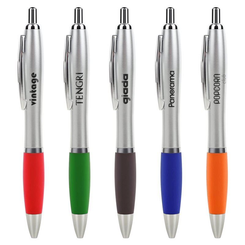 La penna a sfera Click-action è caratterizzata da un design elegante abbinato a un'impugnatura gommata liscia per un maggiore comfort durante la scrittura o il disegno su carta.