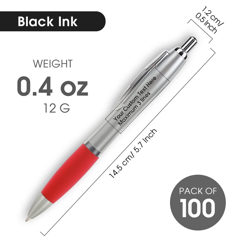 Le penne personalizzate sono realizzate con materiali di alta qualità e disponibili in una varietà di colori. Hanno impugnature gommate lisce, fusti lucidi con impugnatura spessa che offre una stabilità superiore durante la scrittura grazie al meccanismo a scatto alimentato da inchiostro nero con punta media da 0,7 mm.