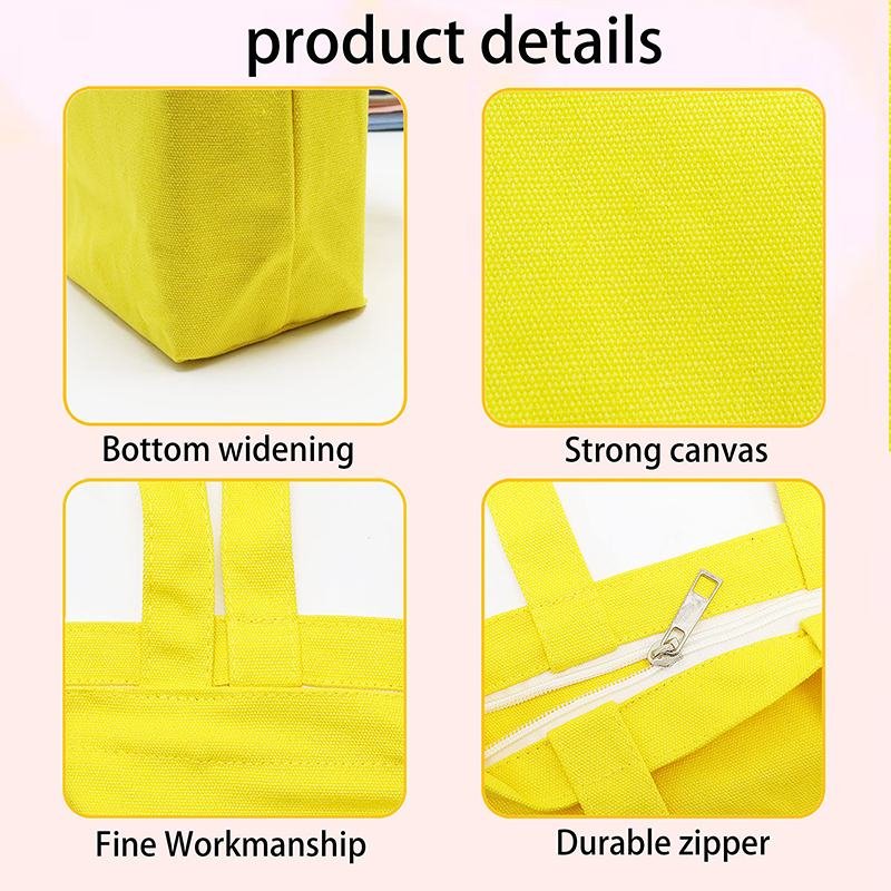 Color pink, yellow, light blue, navy, black, white Closure Zipper Usage DIY, promotional, kids bag, gift bag Feature reusable, eco-friendly Occasion work use, daily use, advertising Quantity 6-pack