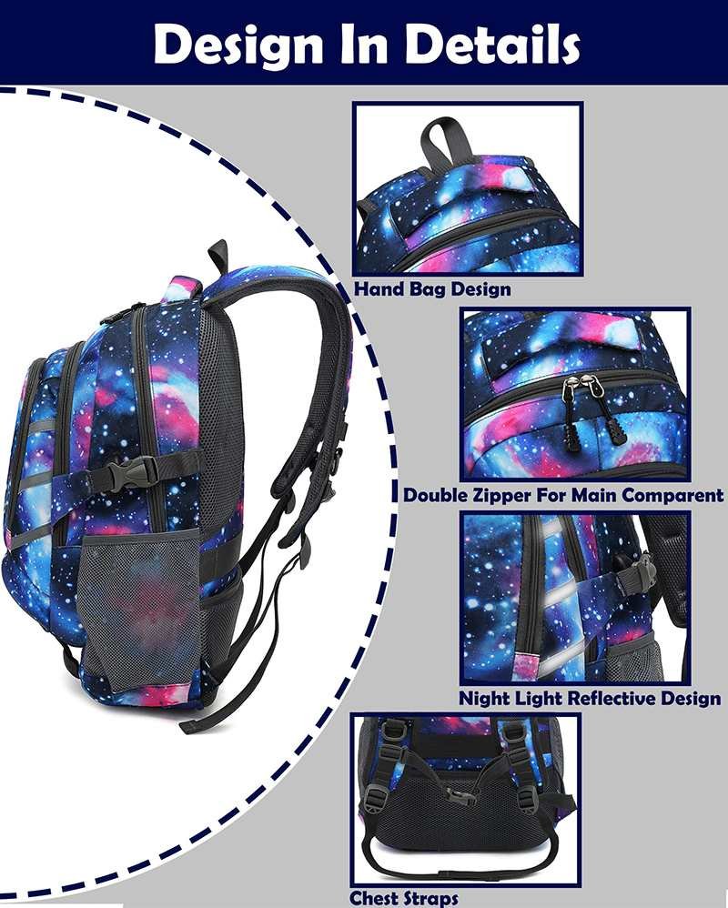 • USB CHARGING PORT & ANTI THEFT & NIGHT LIGHT REFLECTIVE: This vibrant laptop backpack is perfect for keeping your electronics safe and sound. It has an external USB charging port with a built-in cable, as well as a hidden pocket that will keep your credit cards or purse from getting lost in the abyss of space! The front lighting system makes sure no one gets hurt when using this bag at night or if there’s any pesky darkness around–and it won’t wake up others nearby either due to its bright hue (perfect if hiding amongst other objects).