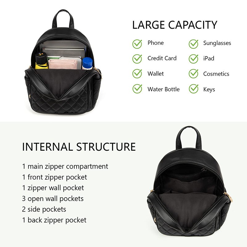 - Large Capacity – Mini backpacks are great for carrying around items on the go, and this one has plenty of room to store your essentials. With a front zipper pocket as well as side pockets that can hold water bottles or other small possessions without being too bulky in size! We even added an additional hidden zippered compartment behind where you would normally put things like phone chargers so it’s safe from tampering when not being used