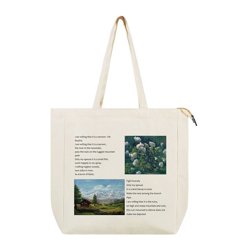 Material 100% cotton canvas Dimension 15.7 x 14.2 x 1.57 inches Color Natural Logo Custom Closure Zipper closure Usage gift bags, grocery bags, school bags Feature reusable, large capacity, food safe, eco-friendly, with inner pocket Occasion daily use, Birthday Party, Mother’s Day, Holiday, Christmas Day