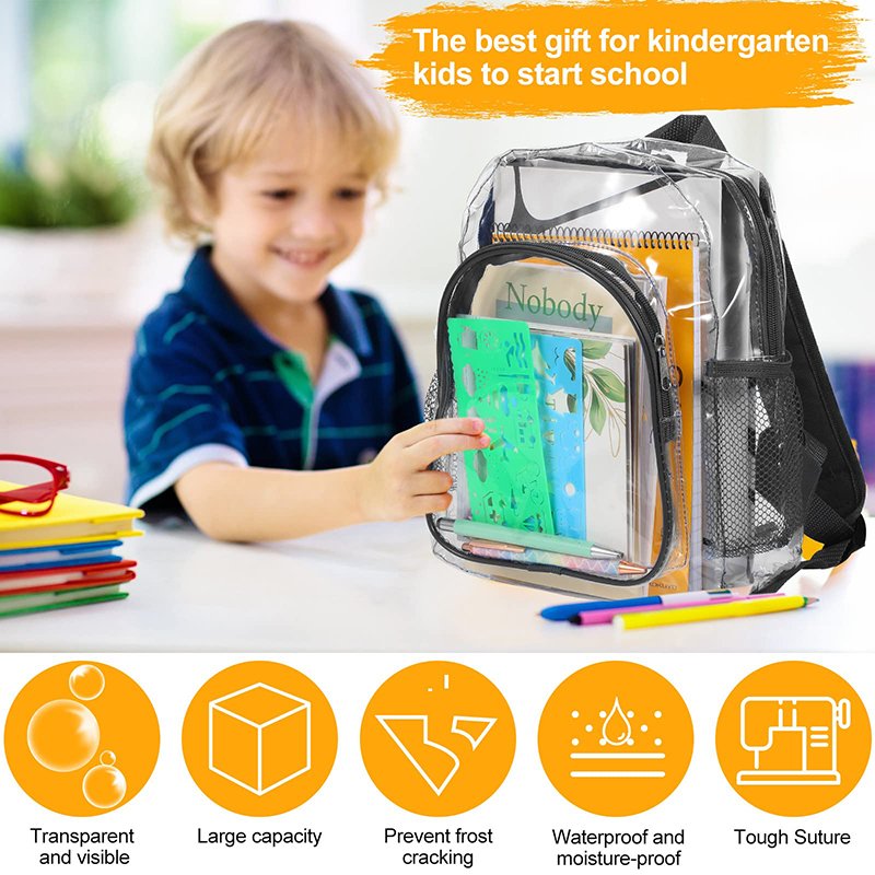 • [Exquisite gift for school-age children] The backpacks are designed to be aesthetically pleasing and durable enough for children of all ages. With bright colors and soft fabrics that won’t hurt or damage your little one’s skinned shoulders when they put it on themselves – you can’t go wrong with these adorable clear bags!