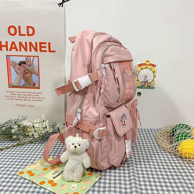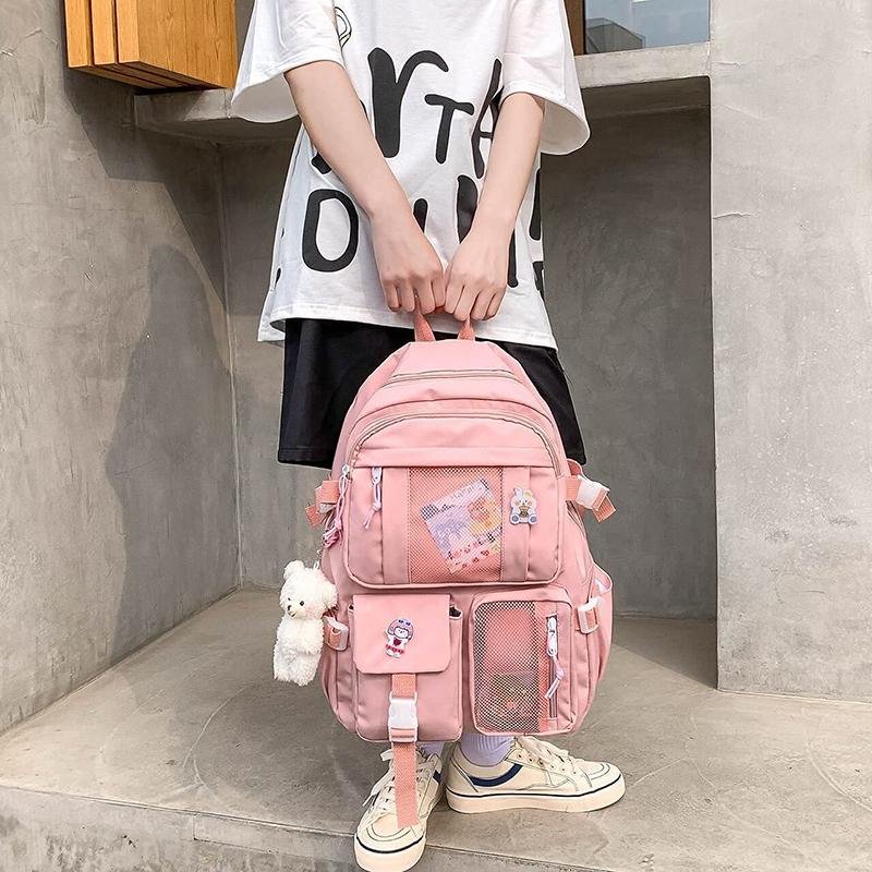- KAWAII ACCESSORIES INCLUDES: This college backpack is the perfect accessory for all your kawaii needs. It comes with 3 pieces of cute pins, an ornament, and three cards!