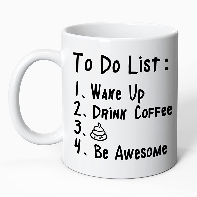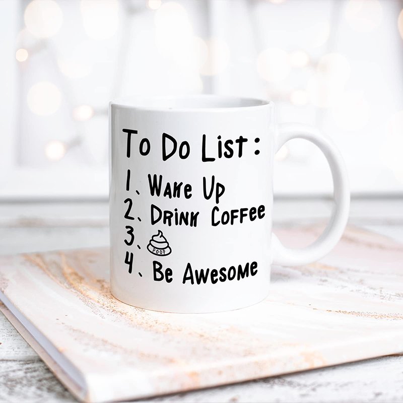 • Novelty Coffee Mug – This coffee mug is perfect for any drinker who wants to add a little humor to their morning routine. It features two sides, one being an “action word” which can be used when necessary and the other side having various phrases that are sure to make you laugh out loud!