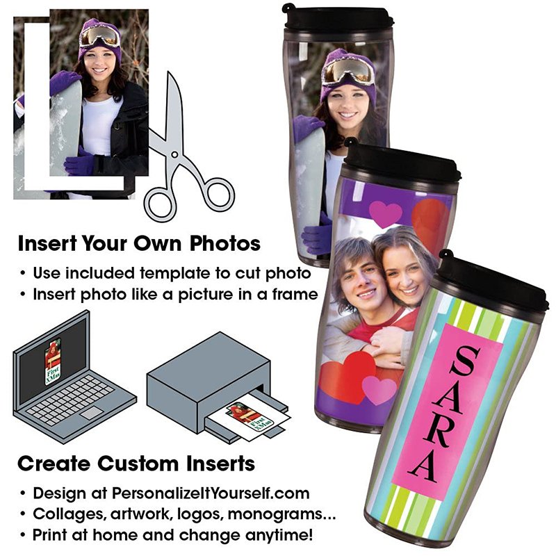 - The photo you just printed can now be inserted into these travel mugs for an extra personal touch.