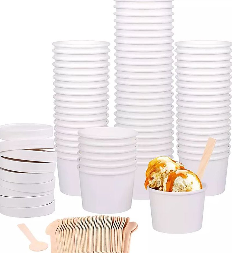 - Bbeyaz kağıt dondurma kapları: Artık bu 8 oz'luk dondurma kabı setini kullanarak en sevdiğiniz dondurulmuş lezzetleri kolayca servis edebilir ve alabilirsiniz. Mağazalar, büfeler, lokantalar veya yemek kamyonları için harika!
