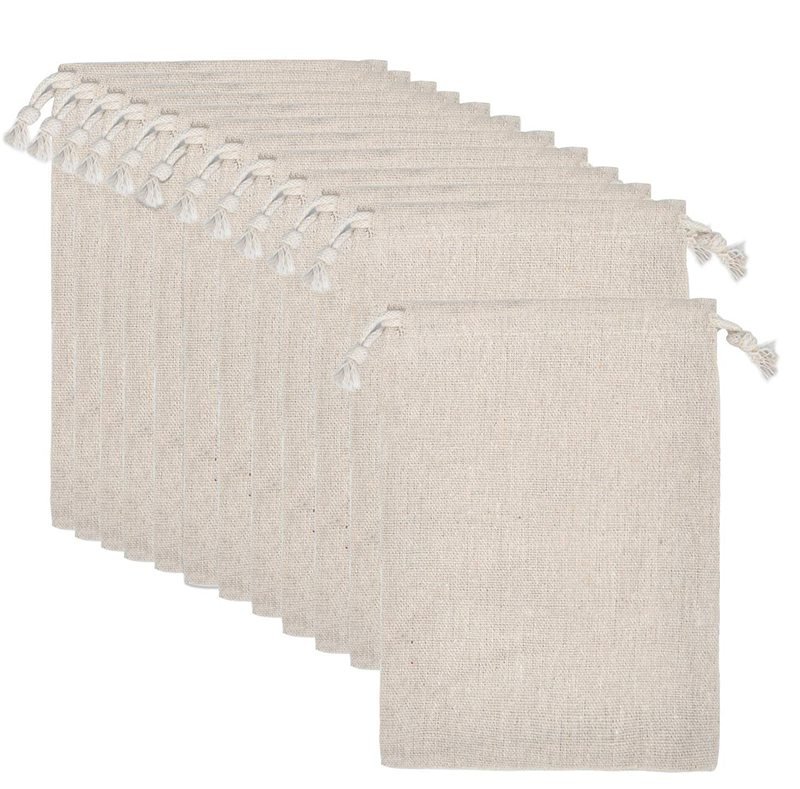 • Malzeme: Bunlar küçük kanvas bağcıklı çantalar doğal ağartılmamış pamuklu muslin kumaştan üretilmiştir, toksik madde içermez, kullanımı güvenlidir, yumuşaktır, dayanıklıdır ve tekrar kullanılabilir, kimyasal ve koku içermez.