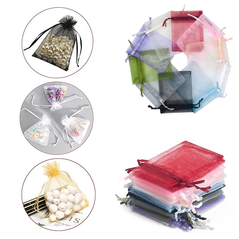 Malzeme Organze Boyut 7 x 9 cm Renk Karışık Renk Stil Şık Logo Gelenek Özellik dayanıklı, şeffaf, özelleştirilebilir Kullanım küçük nesneleri saklamak, parti hediyeleri vb. için Bakım Talimatları El yıkama Miktar 100 adet